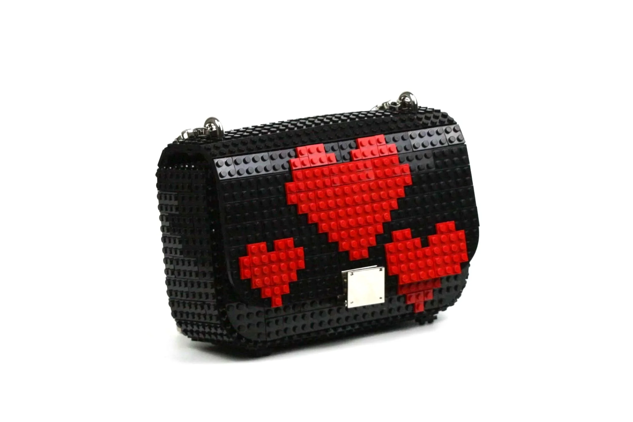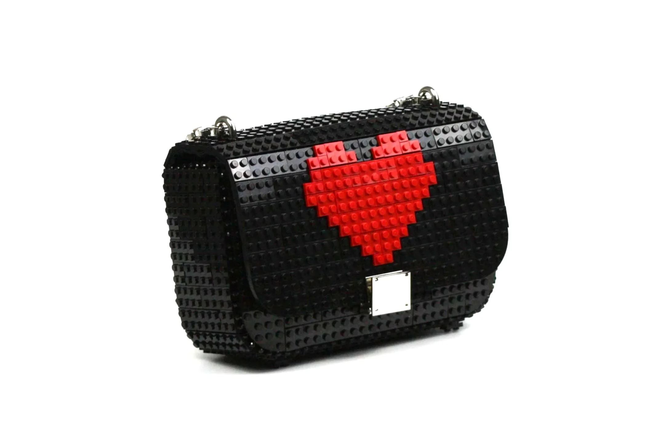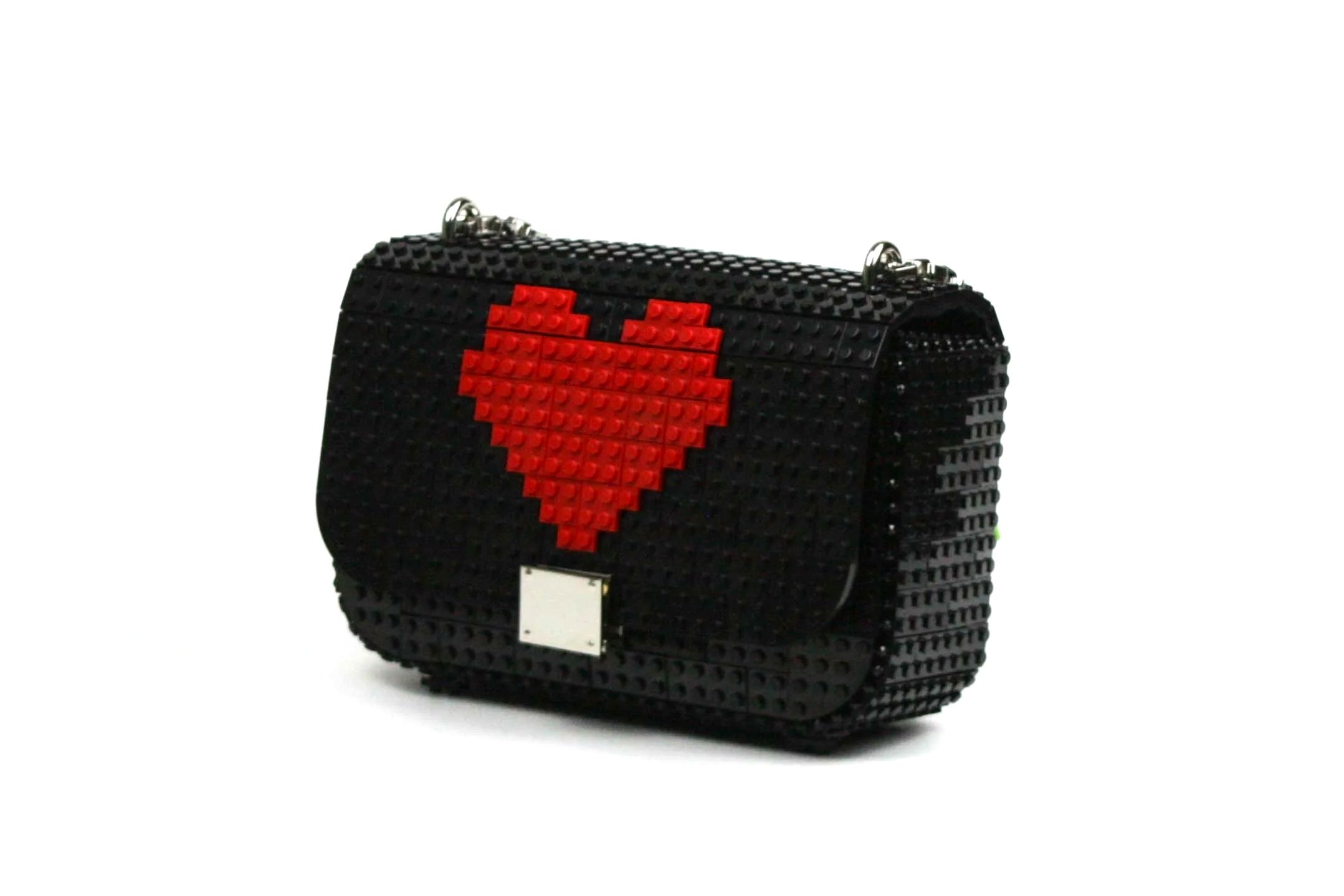 Dimensiones 25cm x 13cm x 6cm. Peso 370gr + 130gr la cadena metálica. Formado por 266 bloques de ABS ensamblados a mano. Incluye funda guardapolvo de algodón, bolsillo interior y cadena metálica de quita y pon de 105 cm de longitud, si desea otro largo o un asa adicional por favor contáctenos al realizar el pedido.