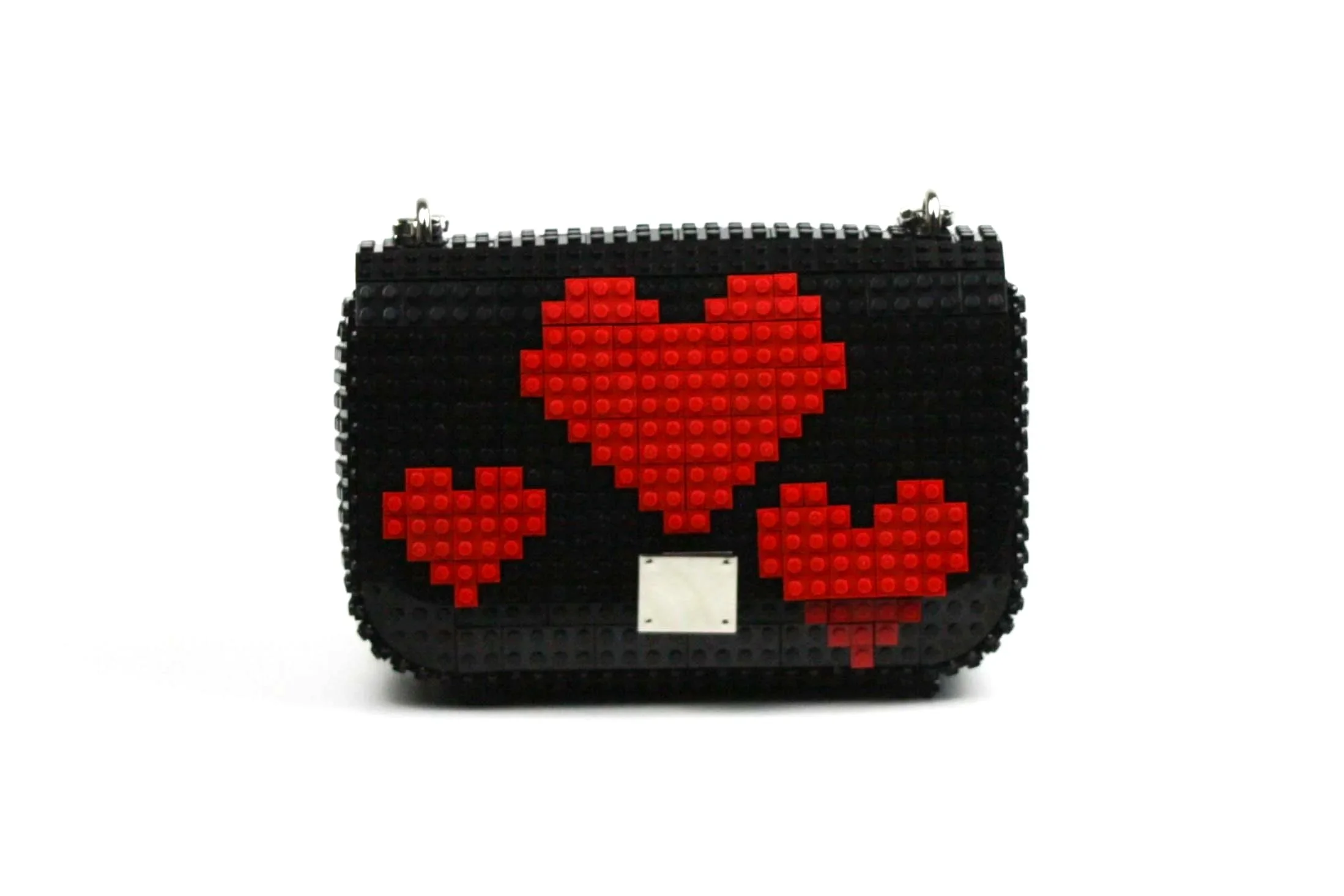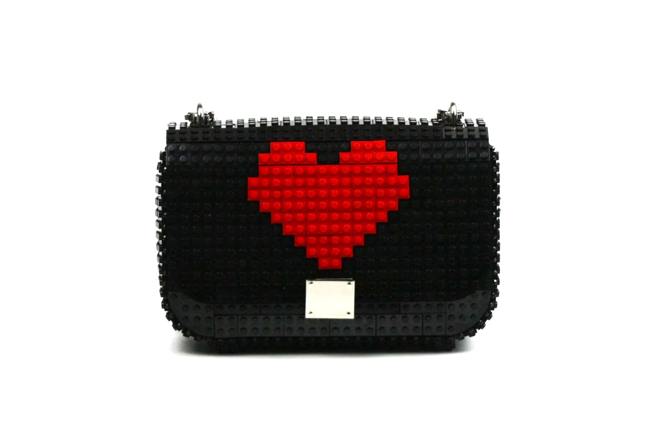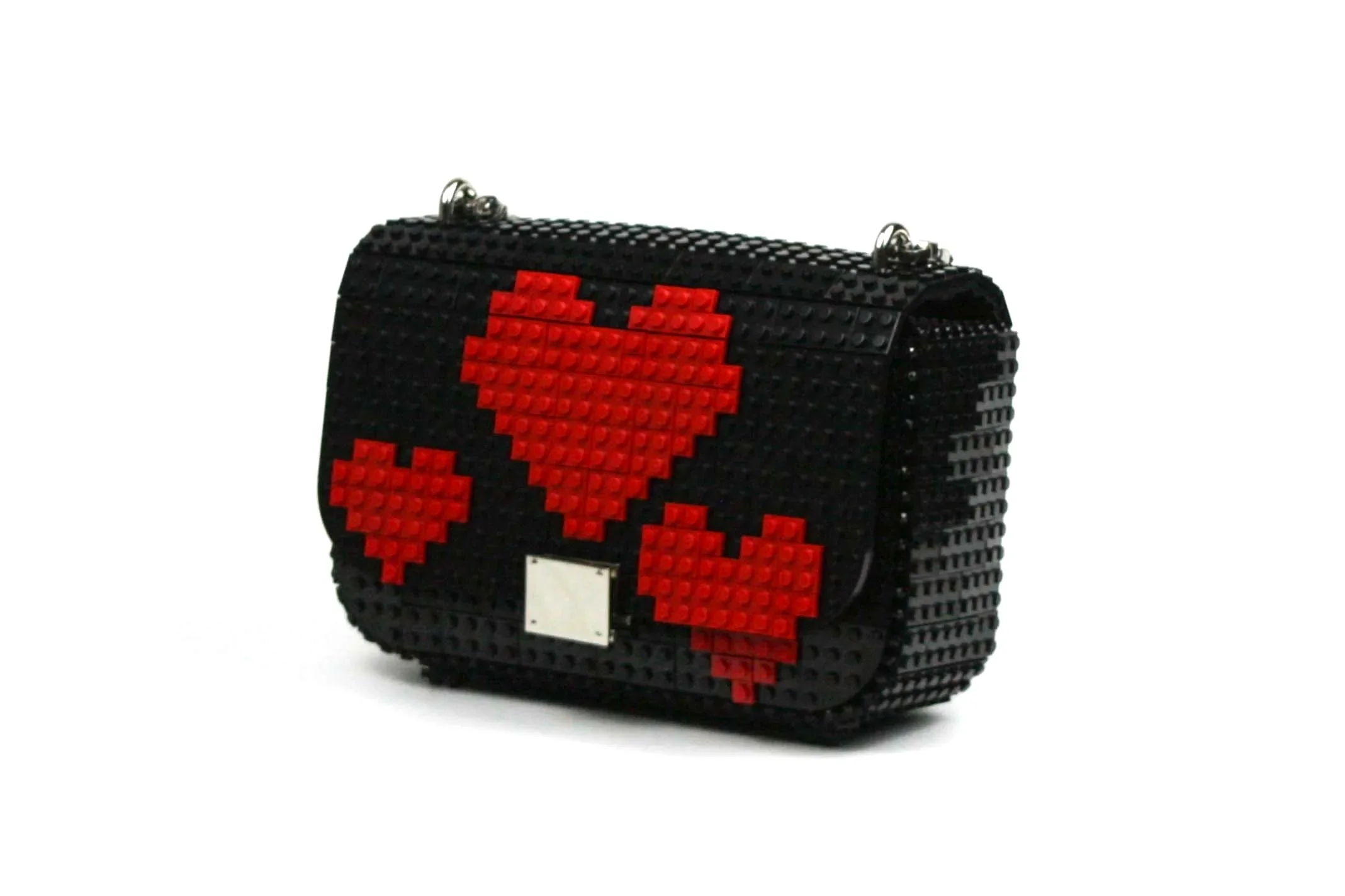 Dimensiones 25cm x 13cm x 6cm. Peso 370gr + 130gr la cadena metálica. Formado por 266 bloques de ABS ensamblados a mano. Incluye funda guardapolvo de algodón, bolsillo interior y cadena metálica de quita y pon de 105 cm de longitud, si desea otro largo o un asa adicional por favor contáctenos al realizar el pedido.